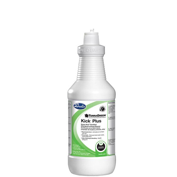 Green Seal Certified hard water scale remover that is safer than HCl or Phos acid cleaners. Unique deactivated acid activates on contact with soil. Safer scale remover with a health rating of 1 in use. Kicks soils like an acid to remove built-up hard water scale, rust, soap scum, mold stains and mildew stains. Worker friendly with a low odor that leaves no harsh acid fumes. Dilutes 3 ways based on soil load. This solution is extremely effective and can be used n a variety of circumstances, if you are looking for a hard water scale remover this is the product for you. (64oz)