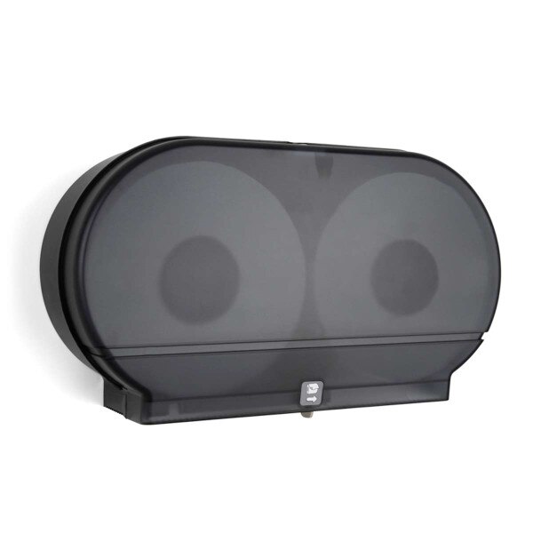 Universal 9″ Twin Jumbo Bath Tissue Dispensers, has a sliding panel that ensures the use of one roll at a time.